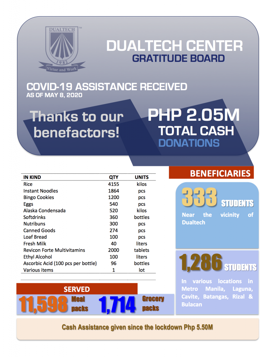 ABS-CBN Lingkod Kapamilya (ABLK), a public service arm of ABS-CBN Corporation, initiated a project to raise funds for scholarship and sponsorship to Dualtech students. These young aspirants come from different backgrounds but with a common goal – to be educated and eventually get a job.